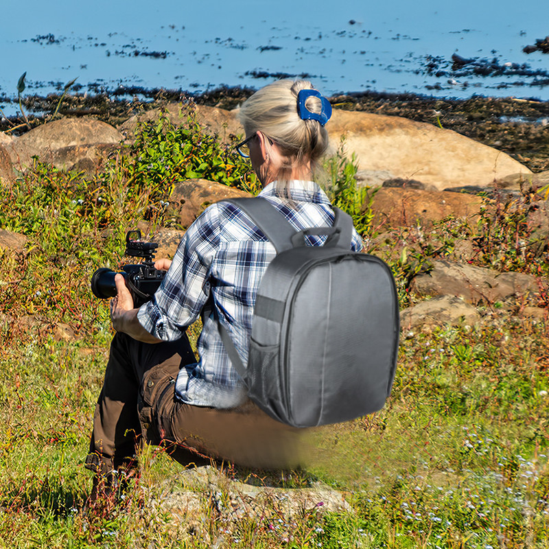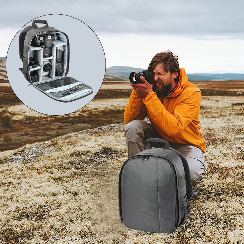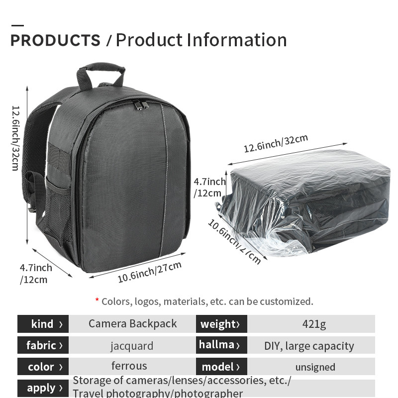 Dimensões da mochila da câmara:10.6*4.7*12.6Esta mochila de câmara fotográfica profissional serve para fotógrafos homens/mulheres, é leve e fácil de transportar.