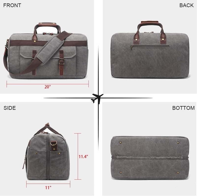 Com tamanho perfeito em 20 "L * 11" W * 11.4" H que atende às restrições de bagagem de bordo da companhia aérea, a mala de viagem é feita de lona de algodão à prova d'água de alta densidade e couro genuíno,com um sistema de travas de metal SBS de qualidade superior e um hardware de tom de bronze clássicoO que oferece a durabilidade para uso a longo prazo.