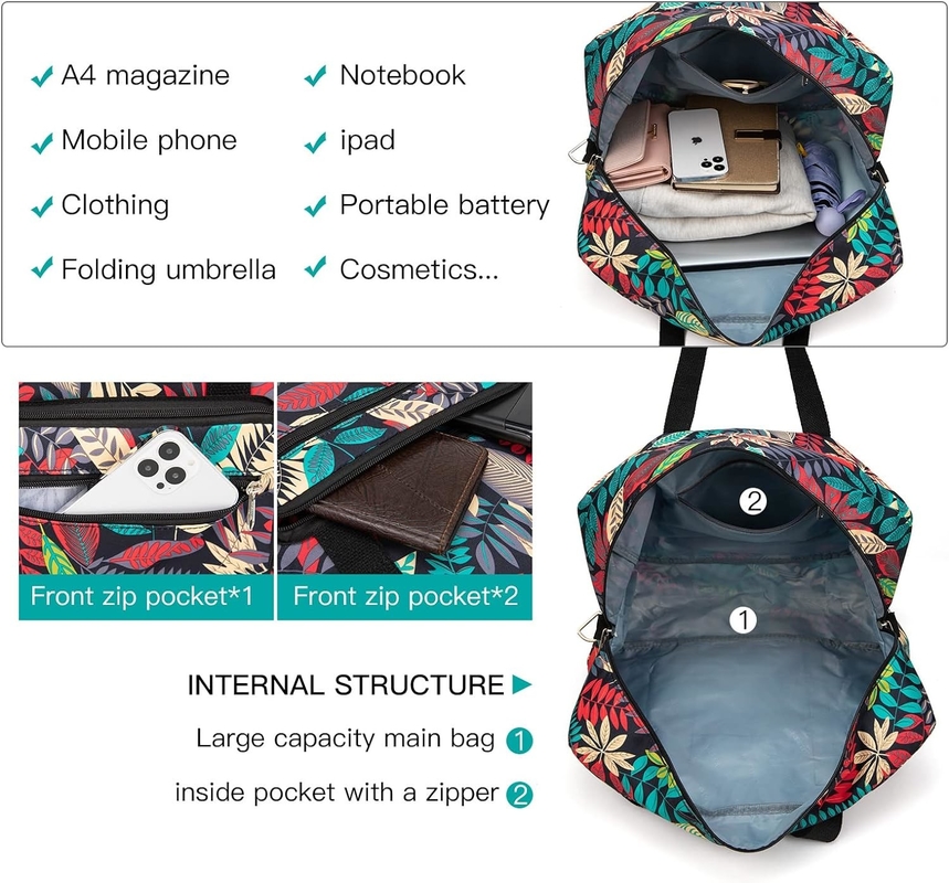 Pode acomodar facilmente todos os itens de viagem e é ótimo para malas de viagem, viagens de fim de semana, bagagem de mão, malas de noite, praias, acampamentos e piqueniques, bem como uma bolsa de yoga e de hospital.